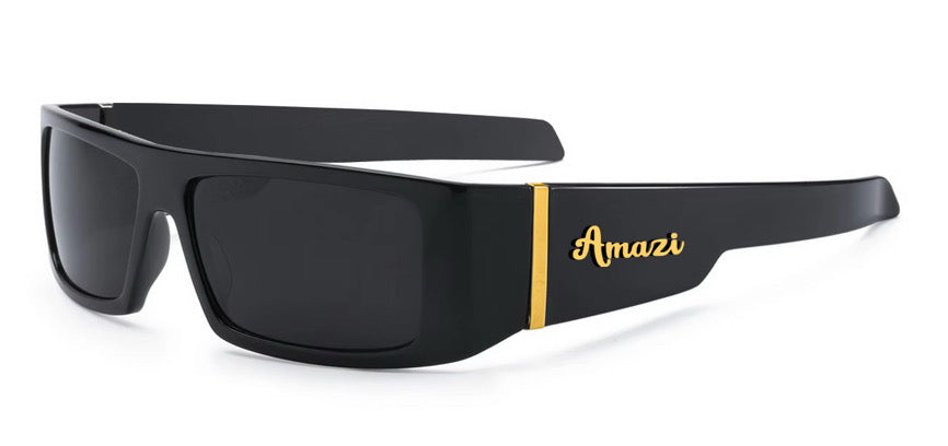 Crafted from high-gloss, impact-resistant acetate, the frame is punctuated by a bold gold accent and the signature Amazilogo etched in metallic gold on the temples—an emblem of unapologetic self-expression. Whether you’re styling on the streets or elevating your festival fit, these sunglasses are built to command attention.